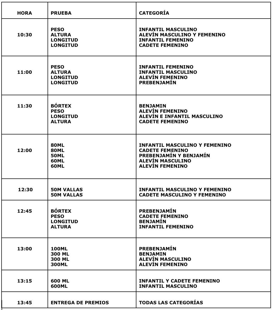 Una vez estimados los niños y niñas que vendrán el sábado al XIII Torneo de Pruebas Combinadas, el horario ha sufrido alguna ligera variación: