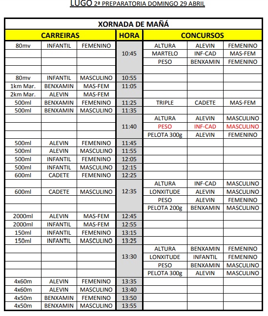 | 11.29 | AG 2019519 | CORCOBA RODRÍGUEZ, DANIELA | ESP | 08 | Franciscanos Lugo | 14/04/2018 | LUGO | ||||