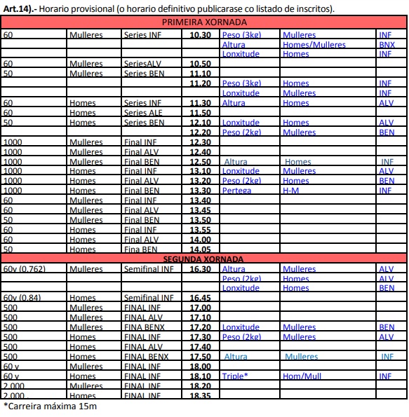 Este Domingo se celebra el cto. gallego en las categorías sub-10,sub-12,sub-14 en la pista cubierta de Ourense.