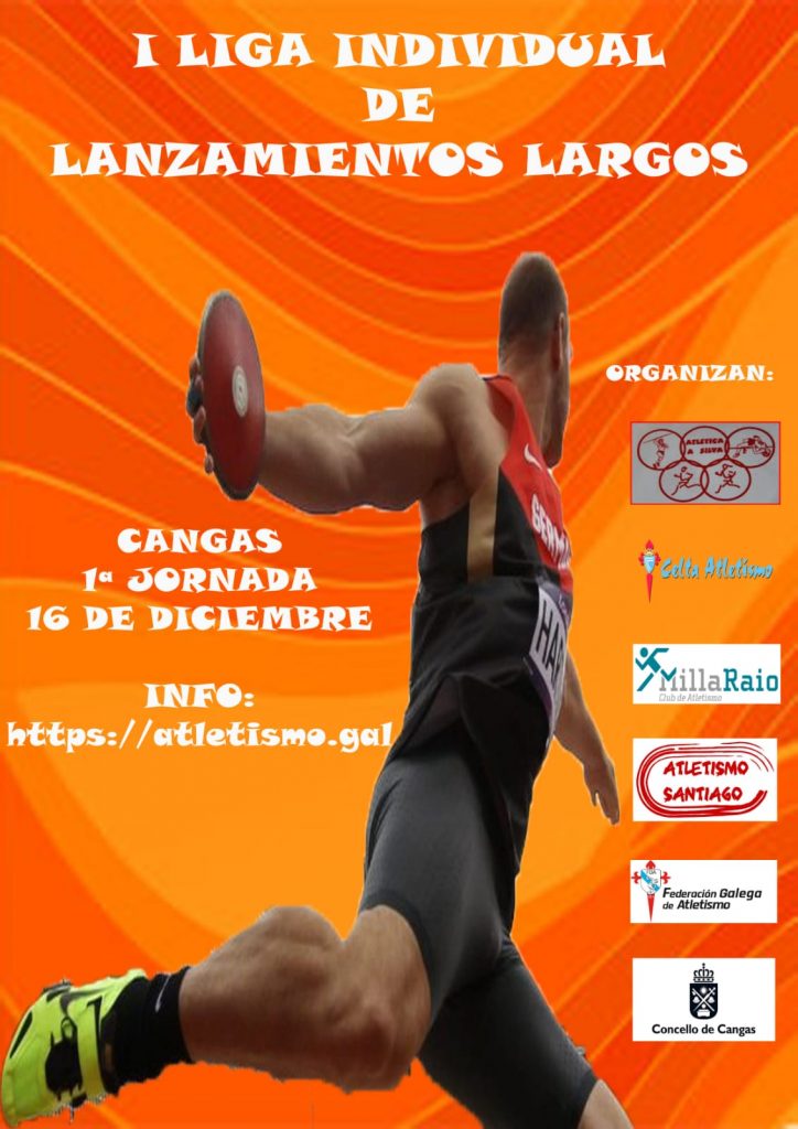 El concello de Cangas en colaboración con la Federación Gallega de Atletismo y organizados por los clubs : Atletica A Silva-Millarario, Atletismo Santiago y Atletismo Celta van a desarrollar en ocho jornadas la 1ª Liga Individual de Lanzamientos Largos.Podrán participar todos l@s atletas Federad@s, desde Sub 14 a Máster. Las inscripciones se harán a través de la plataforma de la RFEA y a la hora de puntuar se tomaran las 3 mejores jornadas de cada atleta. Las competiciones se van a desarrollar en las pistas municipales de Cangas (como mínimo,las 3 primeras) en jornada de mañana , siendo en las siguientes fechas: