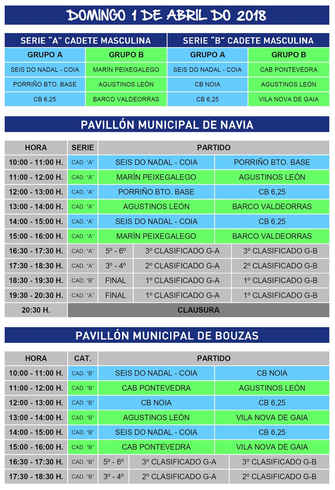 11º TORNEO DE BALONCESTO CADETE E 10º TORNEO DE BALONCESTO INFANTIL: GRUPOS E HORARIOS