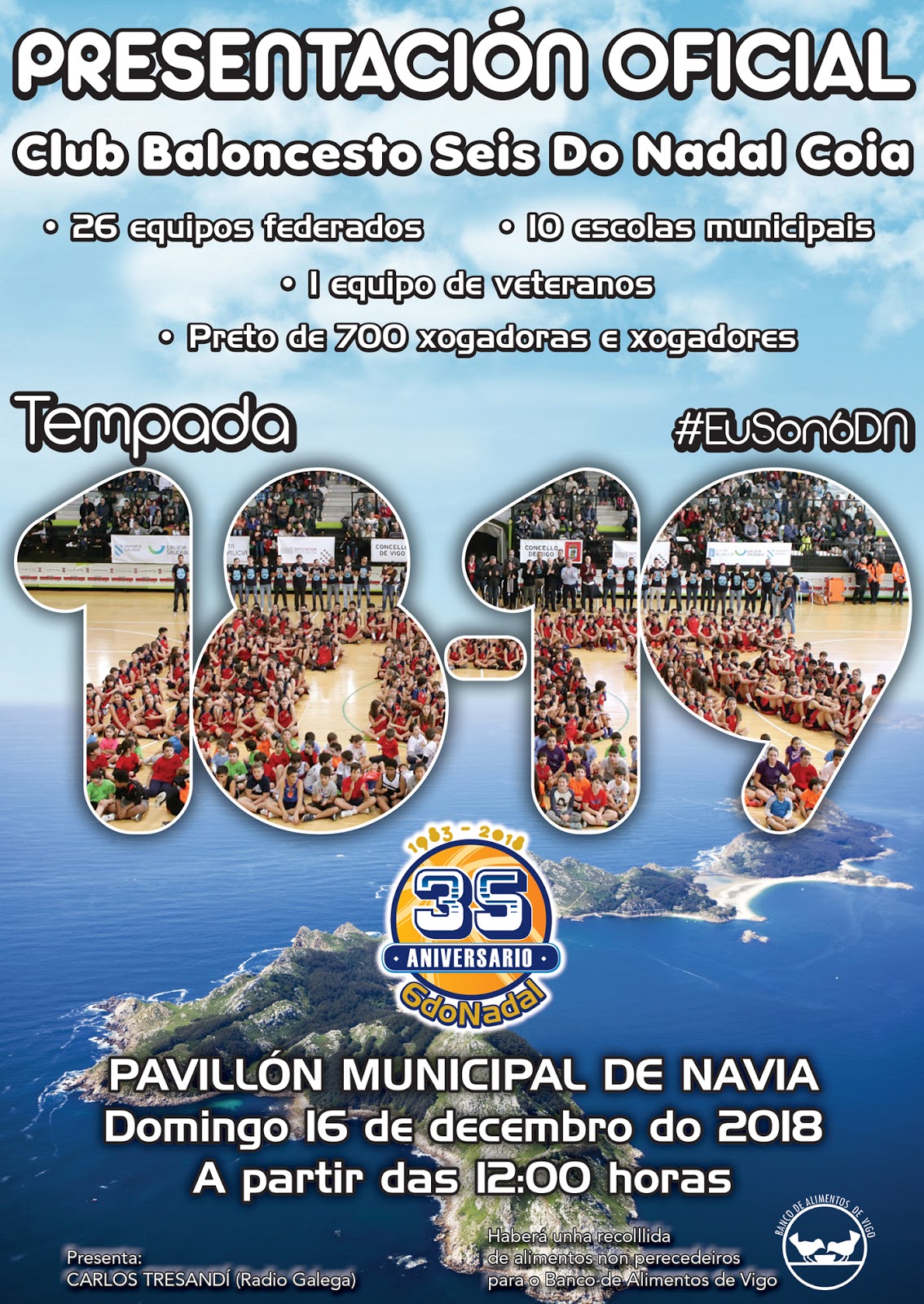 Ademais presentarase oficialmente a tempada 2018/2019 do Club Baloncesto Seis do Nadal – Coia a tódolos medios de comunicación e a toda a familia do deporte da canastra e da cidade de Vigo.