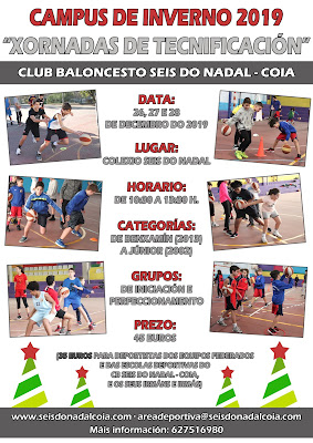 O Club Baloncesto Seis do Nadal – Coia organizará nestas presentes vacacións de Nadal unha nova Edición do Campus de Inverno 2019 «Xornadas de Tecnificación». Despois do éxito das pasadas edicións do campus a entidade volverá a celebrar as xornadas de perfeccionamento técnico.