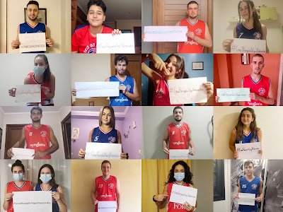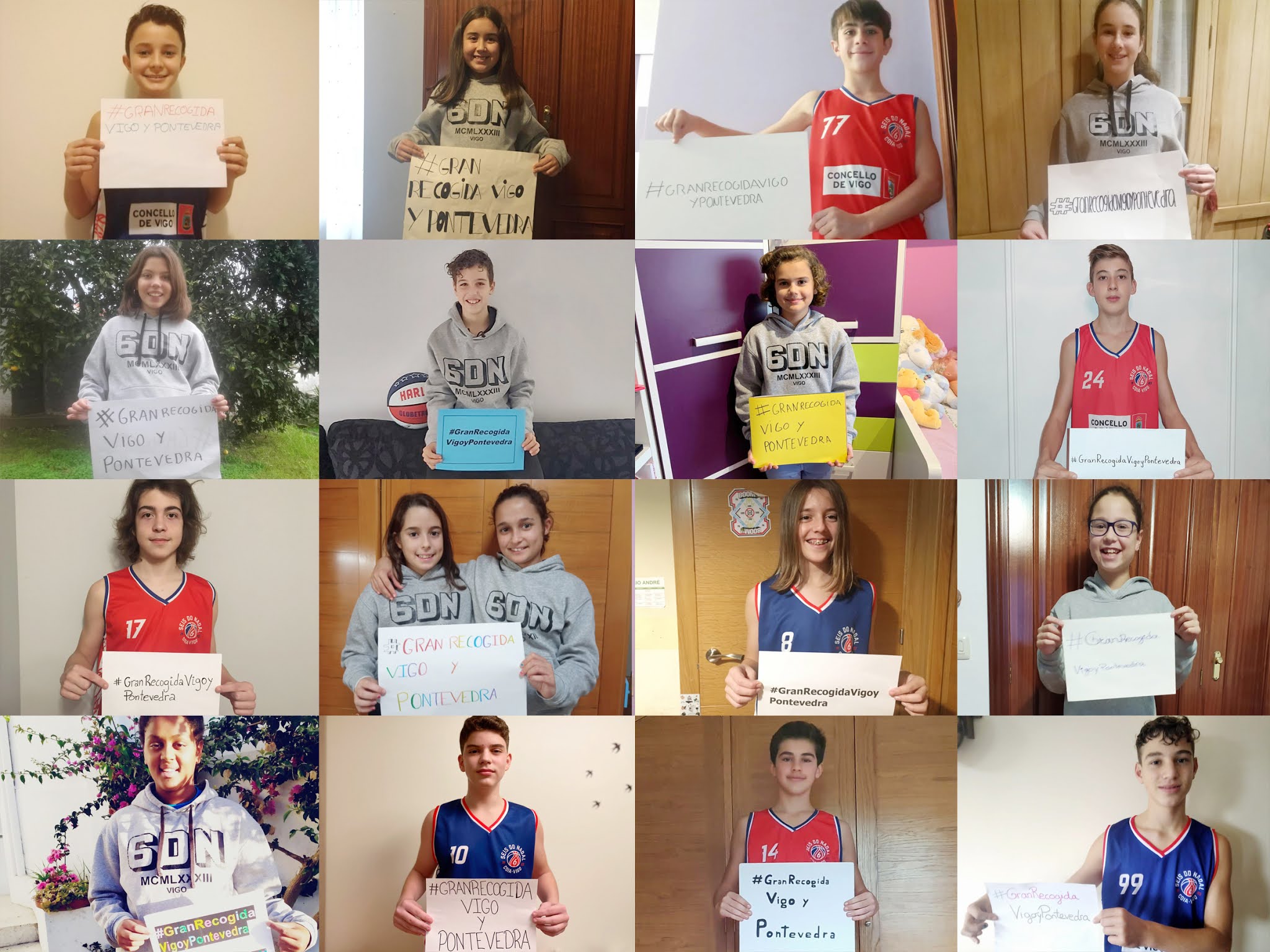 Na imaxe de arriba unha representación dos xogadores do Sénior Masculino de Primeira División e das xogadoras do Sénior Feminino de Primeira Nacional amosan o seu apoi á Gran Recollida de Alimentos de Vigo e Pontevedra. Na imaxe de abaixo os deportistas máis pequenos do club tamén colaboran coa difusión da Gran Recollida do Banco de Alimentos de Vigo.