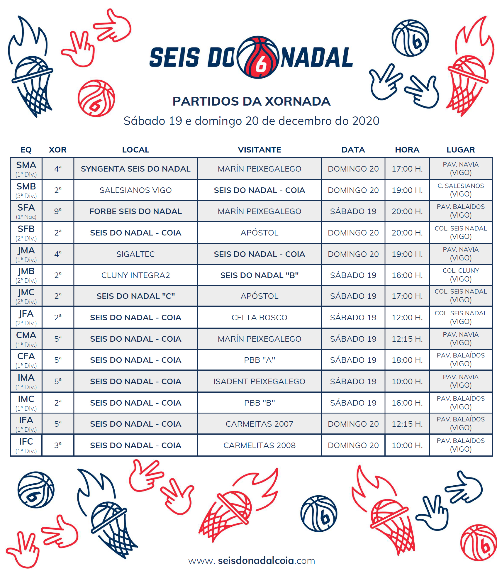 Baloncesto diciembre 18, 2020diciembre 18, 2020 PARTIDOS DA XORNADA: SÁBADO 19 E DOMINGO 20 DE DECEMBRO DO 2020 Enviado por:Deporte Galicia Baloncesto Publicado por: Seis do Nadal Basket Enlace con la noticia original: PARTIDOS DA XORNADA: SÁBADO 19 E DOMINGO 20 DE DECEMBRO DO 2020