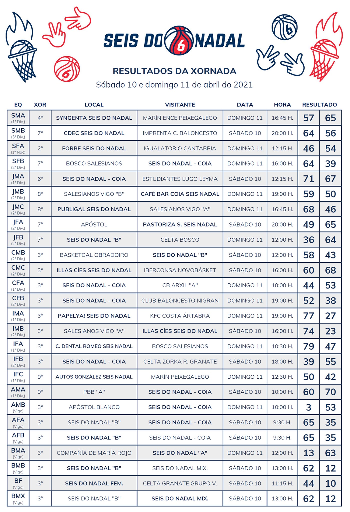 Baloncesto abril 12, 2021abril 16, 2021 RESULTADOS DA XORNADA: SÁBADO 10 E DOMINGO 11 DE ABRIL DO 2021 Enviado por:Deporte Galicia Baloncesto Publicado por: Seis do Nadal Basket Enlace con la noticia original: RESULTADOS DA XORNADA: SÁBADO 10 E DOMINGO 11 DE ABRIL DO 2021