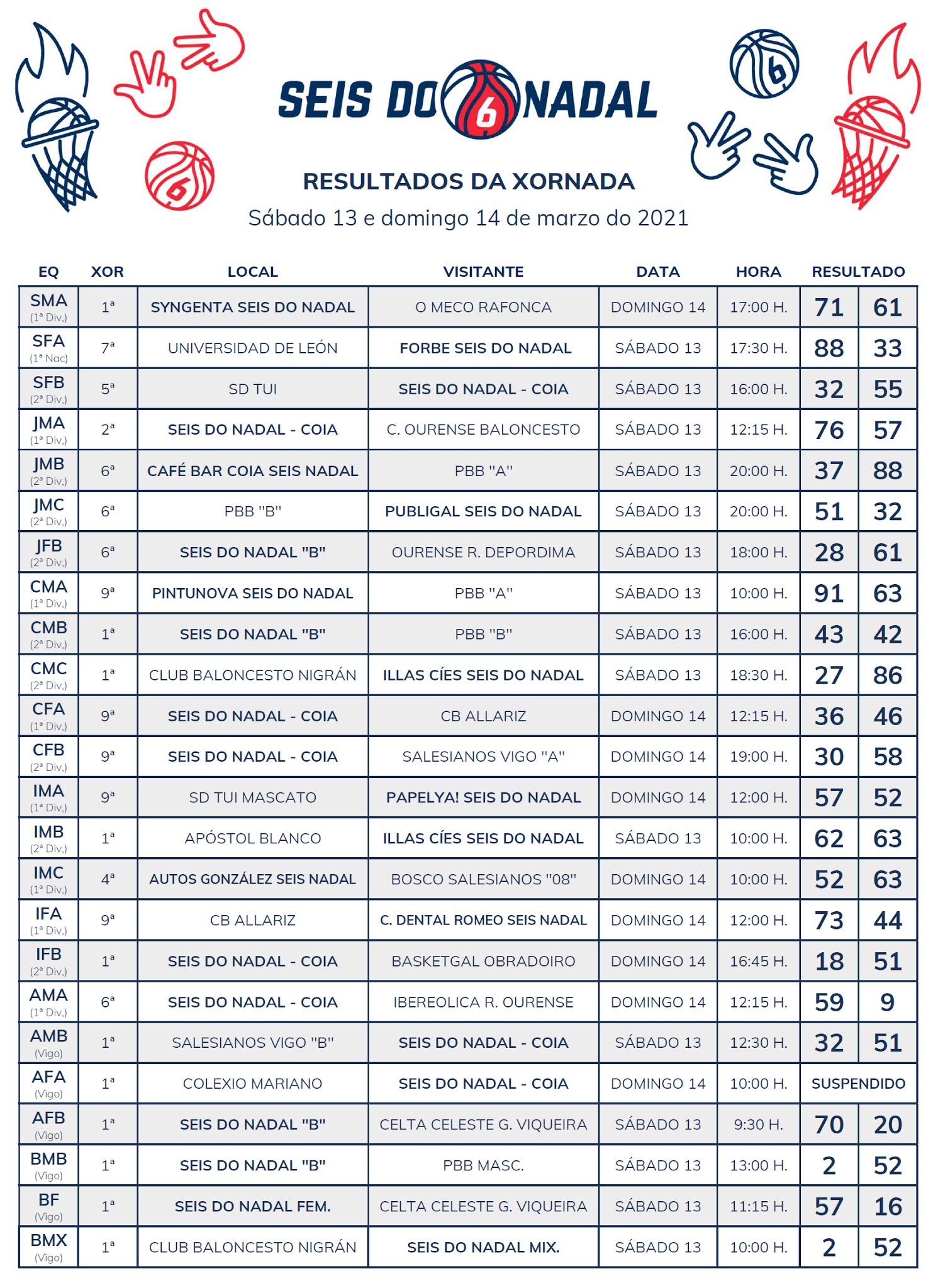 Baloncesto marzo 15, 2021marzo 15, 2021 RESULTADOS DA XORNADA: SÁBADO 13 E DOMINGO 14 DE MARZO DO 2021 Enviado por:Deporte Galicia Baloncesto Publicado por: Seis do Nadal Basket Enlace con la noticia original: RESULTADOS DA XORNADA: SÁBADO 13 E DOMINGO 14 DE MARZO DO 2021