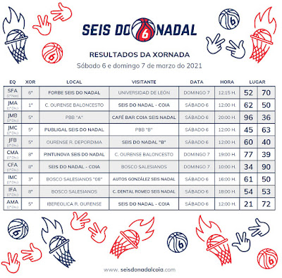Baloncesto marzo 6, 2021marzo 15, 2021 RESULTADOS DA XORNADA: SÁBADO 6 E DOMINGO 7 DE MARZO DO 2021 Enviado por:Deporte Galicia Baloncesto Publicado por: Seis do Nadal Basket Enlace con la noticia original: RESULTADOS DA XORNADA: SÁBADO 6 E DOMINGO 7 DE MARZO DO 2021