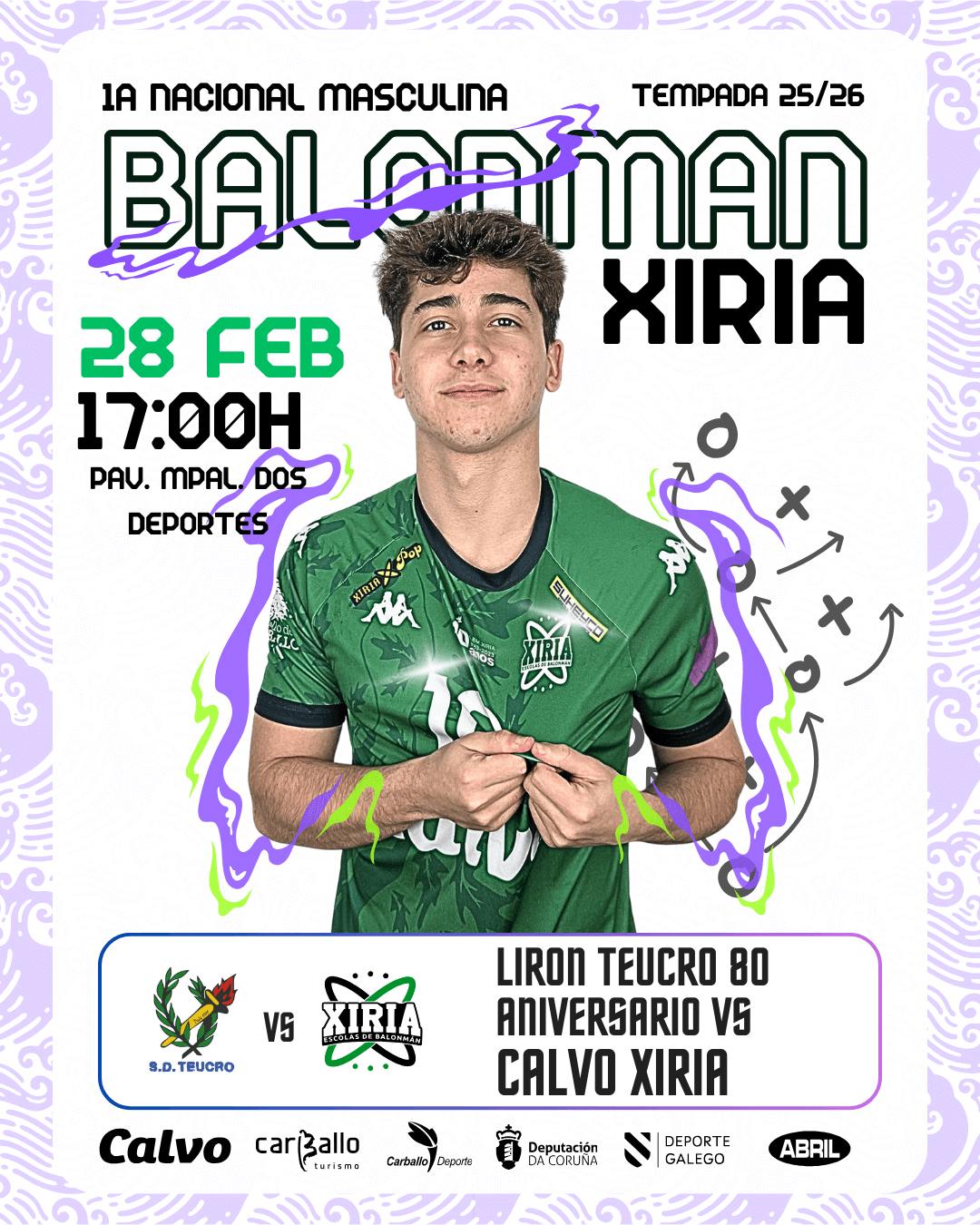Este sábado 28 de febreiro ás 17:00h, o Pavillón Municipal dos Deportes de Pontevedra vestirá as súas mellores galas para recibir un dos duelos máis potentes da xornada da Primeira Nacional. O Calvo Xiria desprázase a Pontevedra para enfrontarse ao Lirón Teucro, nun partido que promete emoción e un nivel competitivo altísimo entre dous clásicos da categoría que loitan por consolidarse na zona nobre da clasificación.… Seguir lendo >>
