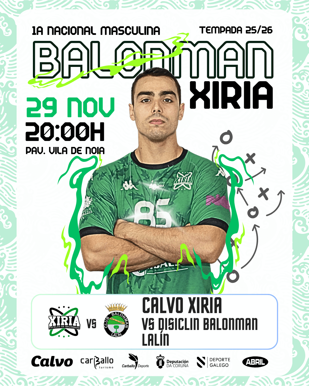 O Pavillón Vila de Noia de Carballo acollerá este sábado 29 de novembro ás 20:00h un dos clásicos do balonmán galego na Primeira Estatal (Grupo A): o CALVO XIRIA enfróntase ao DISICLIN BALONMAN LALIN. Este duelo promete máxima intensidade e ten un valor crucial para as aspiracións de ambos na clasificación.… Seguir lendo >>