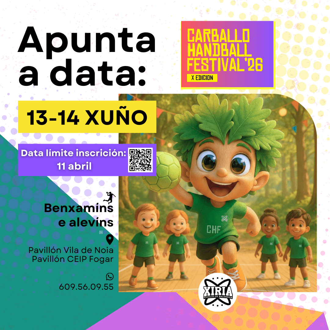 O Carballo Handball Festival ’26 xa ten novas datas: 13 e 14 de xuño do 2026.