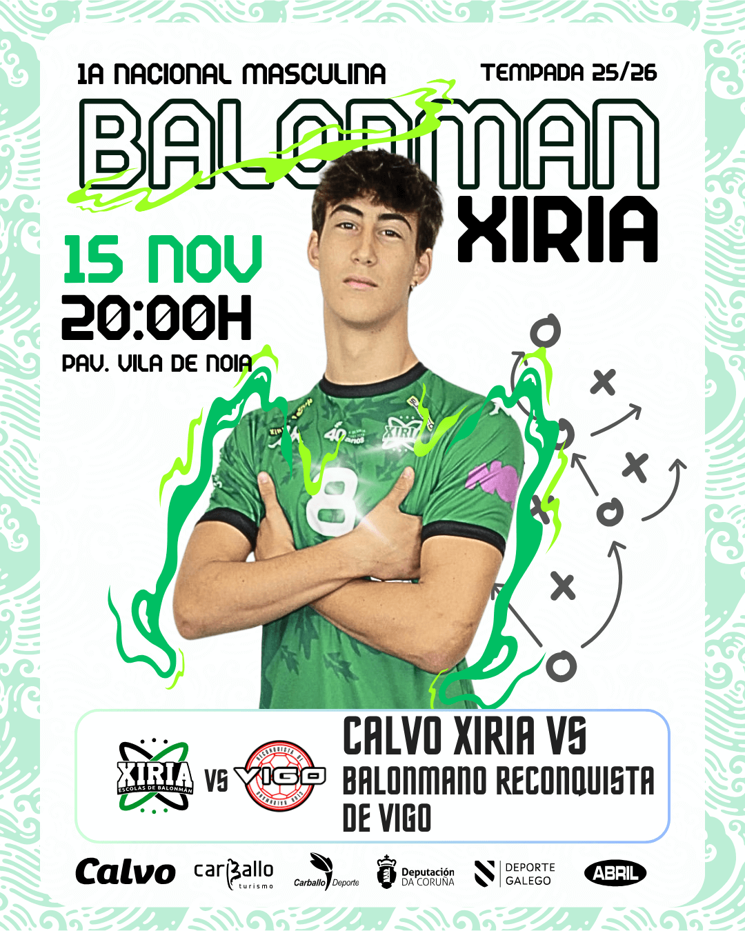 Este sábado 15 de novembro ás 20:00h no Pavillón Vila de Noia, o Calvo Xiria recibe ao Balonmán Reconquista de Vigo nun encontro crucial da 1ª Estatal. O equipo de Carballo vén de dar un golpe de confianza cunha vitoria na casa ante un dos favoritos da categoría, o SD Teucro.… Seguir lendo >>
