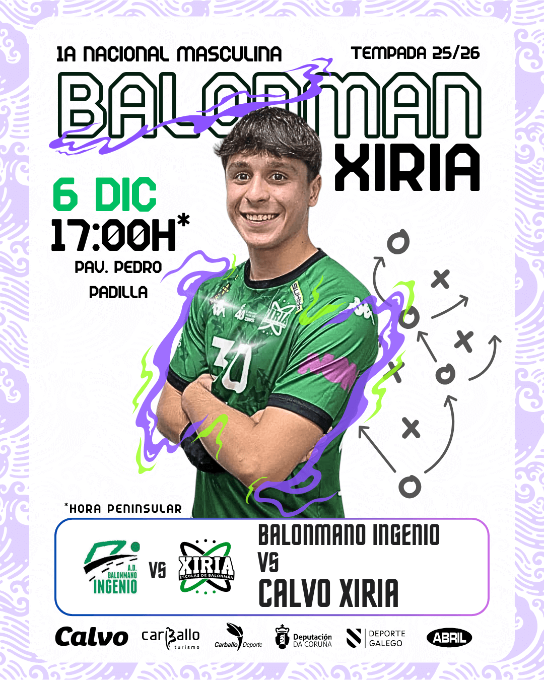 O Calvo Xiria afronta este sábado 6 de decembro o seu segundo desprazamento máis longo da tempada, viaxando ata Gran Canaria para enfrontarse ao Balonmano Ingenio ás 17:00h (hora peninsular) no Pavillón Pedro Padilla. Un duelo clave da Primeira Estatal Masculina (Grupo A) que enfronta a dous equipos con obxectivos ambiciosos.… Seguir lendo >>