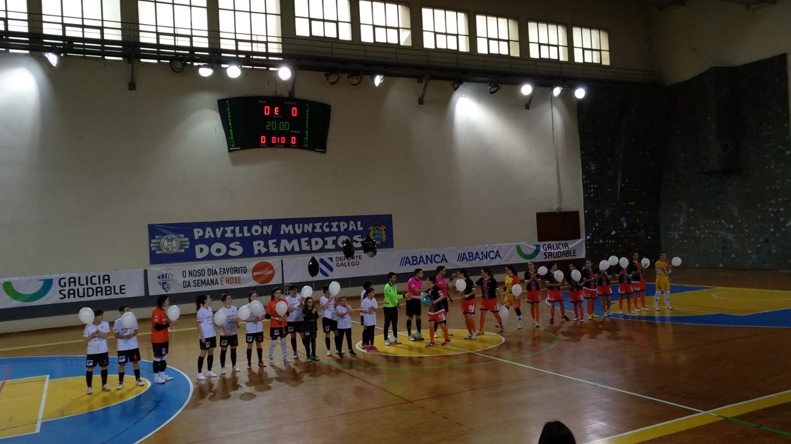El partido comenzó con un detallazo de ambos equipos al salir al campo con unos globos en homenaje y recuerdo al pequeño #Gabriel demostrando que las chicas y el fútbol sala femenino no es ajeno a estos tristes detalles de la vida y enviando un bonito recuerdo a los padres del niño.