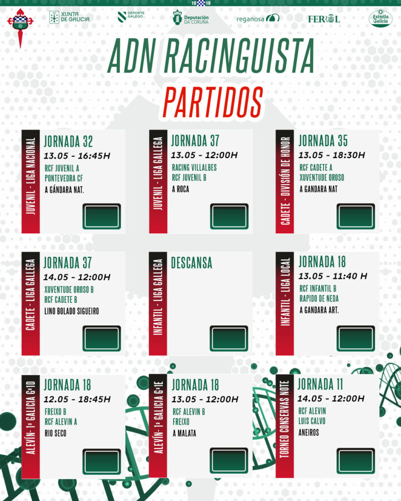 La entrada Partidos de nuestra cantera 12,13 y 14 de mayo aparece primero en Racing Club de Ferrol.